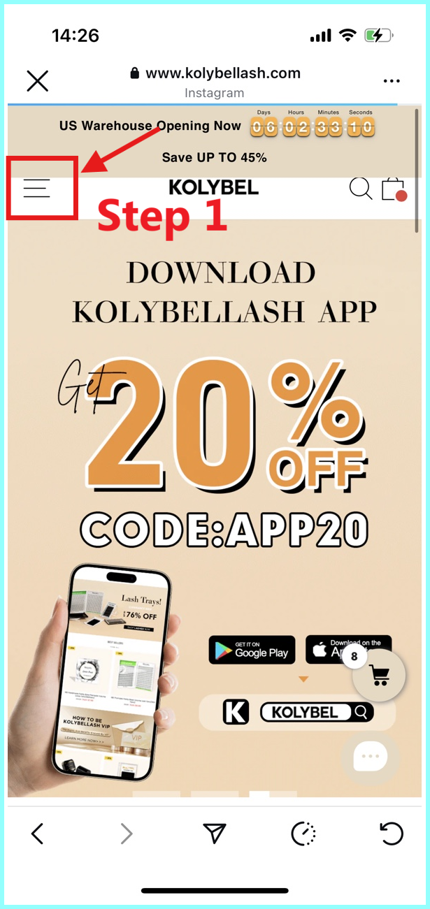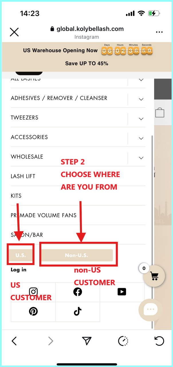 Caso 1: Amber es una estadounidense que usa pestañas postizas. Necesita enviar sus productos a Estados Unidos, pero al finalizar la compra, descubre que no se pueden enviar. En ese caso, primero debe vaciar el carrito de compras , luego ajustar la compra a Estados Unidos como se muestra en la imagen y luego volver a realizar el pedido.